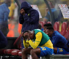 Dejected Mamelodi Sundowns players after they lost the CAF Champions League Final 2-1 (Aggregate 3-2) to Pyramids of Egypt (Top picture) in Cairo, last Sunday. Images: Facebook / YouTube